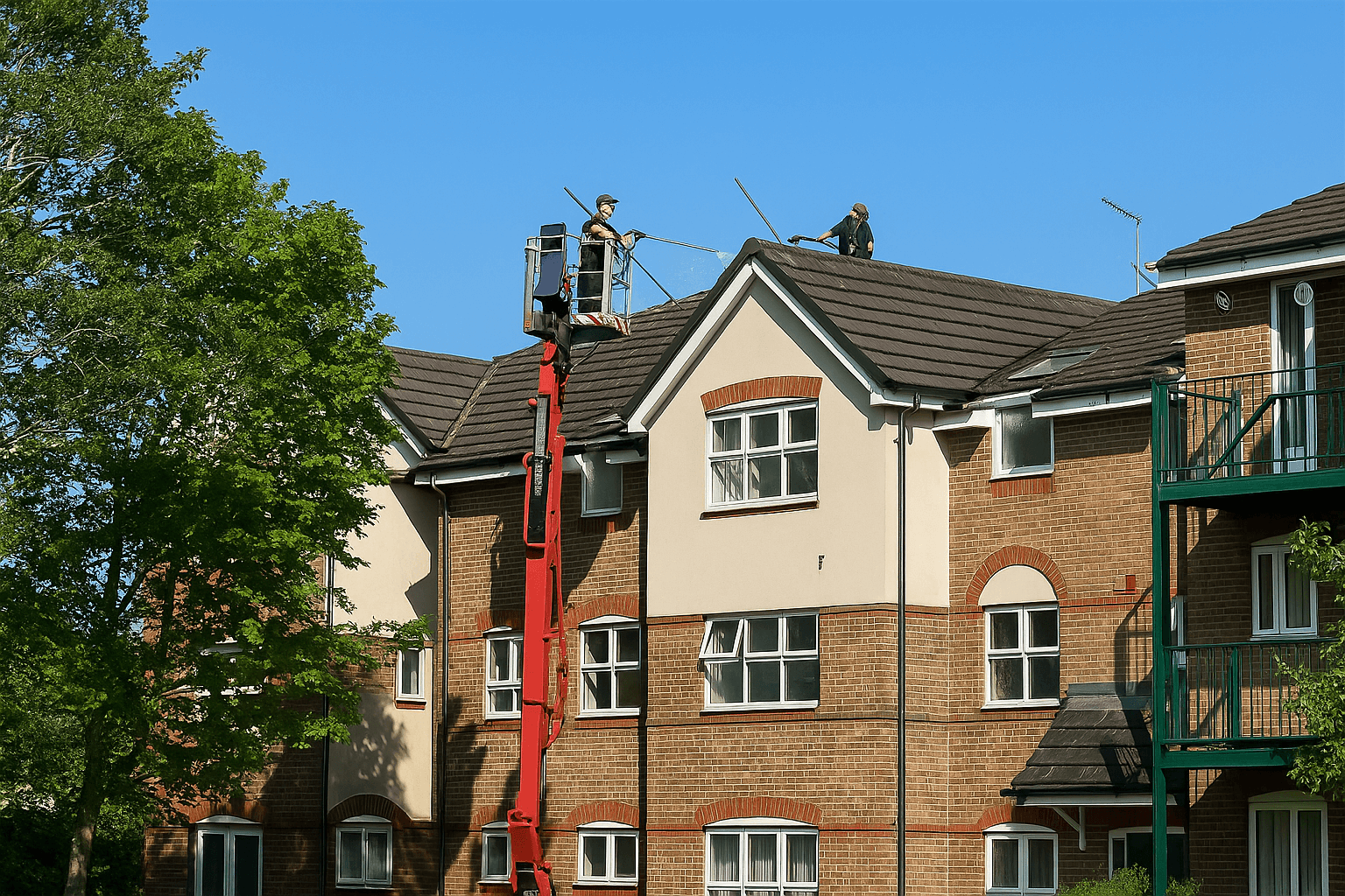 The full block was cleaned efficiently and safely with no need for scaffolding. Residents were unaffected and the roof lifespan was extended.